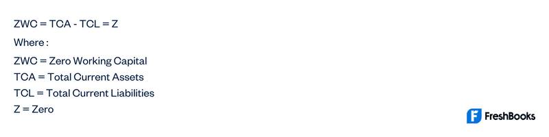 Zero working capital is calculated using the following formula: