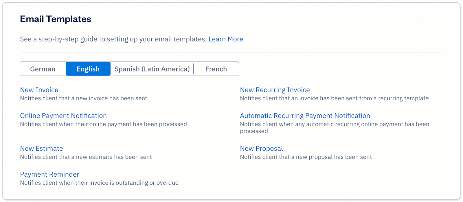We’ve also introduced an advanced layer of language customization exclusive to our Premium and Select plan users. This new feature allows you the flexibility to personalize the Spanish defaults directly in the Email Templates section under Email Customization. This feature is all about making FreshBooks even more user-friendly and adaptable to your unique business needs.