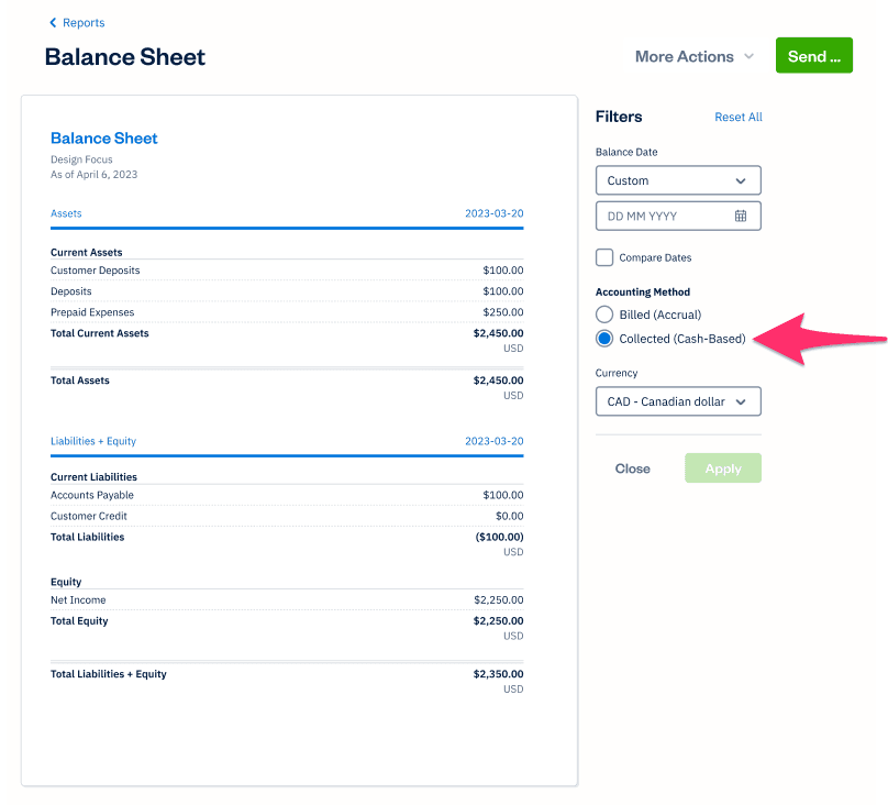 Understanding the diverse needs of your clients, we’ve added a cash-based filter to the FreshBooks Balance Sheet report. This much-requested feature is a major improvement for businesses that operate on a collected or cash basis, allowing for accurate financial reporting and making tax time less stressful.
