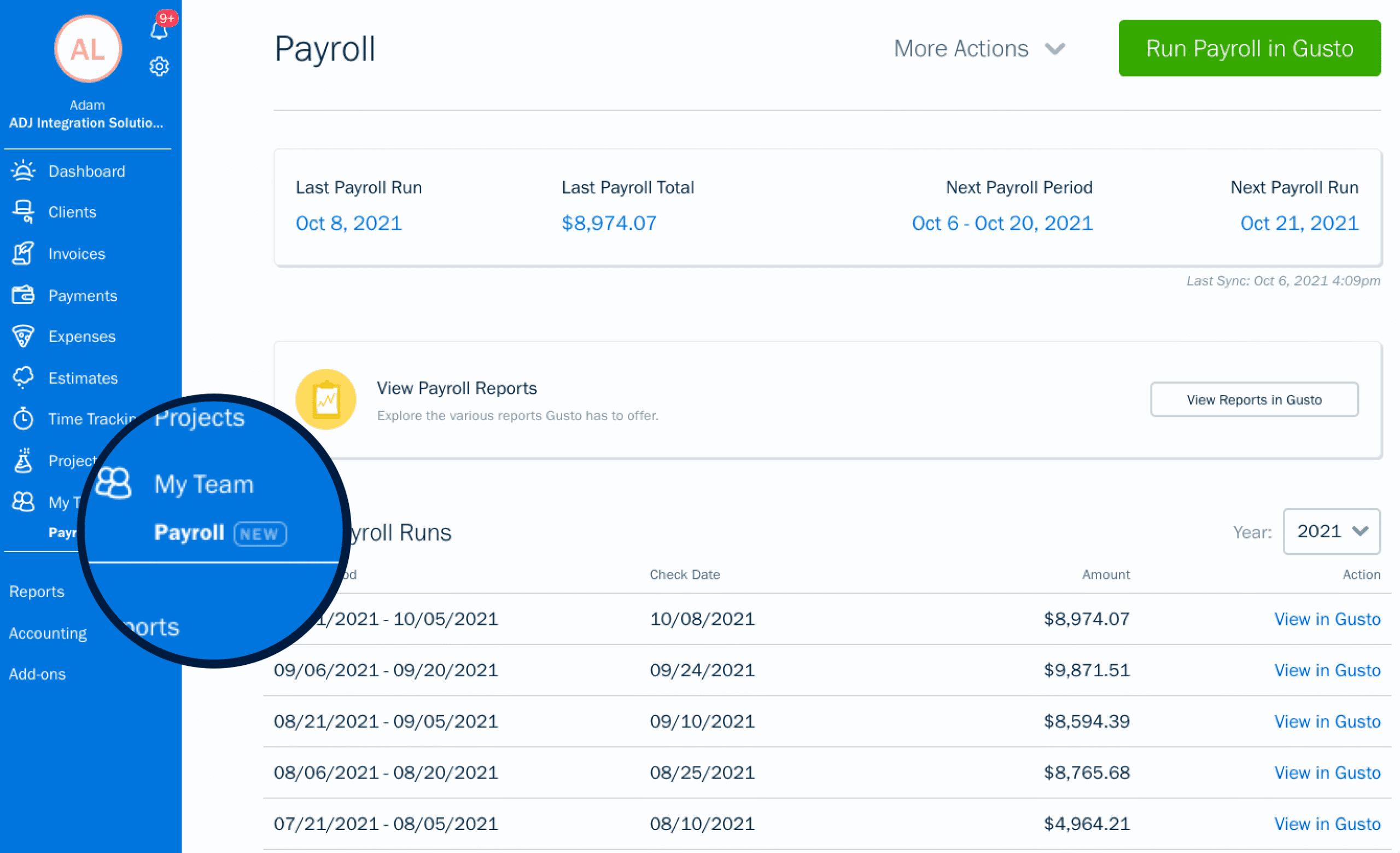 FreshBooks Payroll Software, powered by Gusto, simplifies payroll management for small businesses by automating direct deposit payments. With FreshBooks, you can easily set up and manage direct deposits, ensuring your employees are paid on time, every time. The platform securely handles the process, reducing errors and saving time compared to manual systems. By integrating billing, accounting, and payroll software in one place, FreshBooks streamlines your operations, helping you save time and improve efficiency.