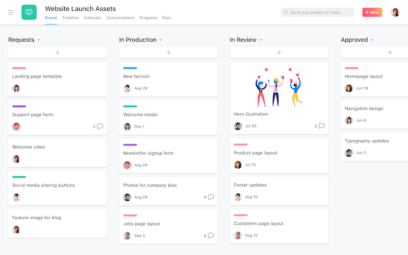 Asana’s minimalistic user interface makes it easy to examine the bigger picture and observe how each project unfolds. You can create and run projects internally or collaborate with your clients on their end.