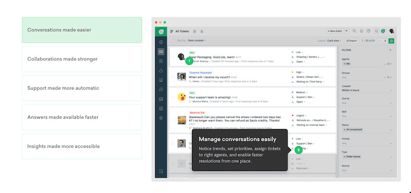Another interesting option in the customer-support lineup. ZenDesk has been around since 2007 and offers a solid roster of UX features, including skill-based ticked distribution and support for answer bots.