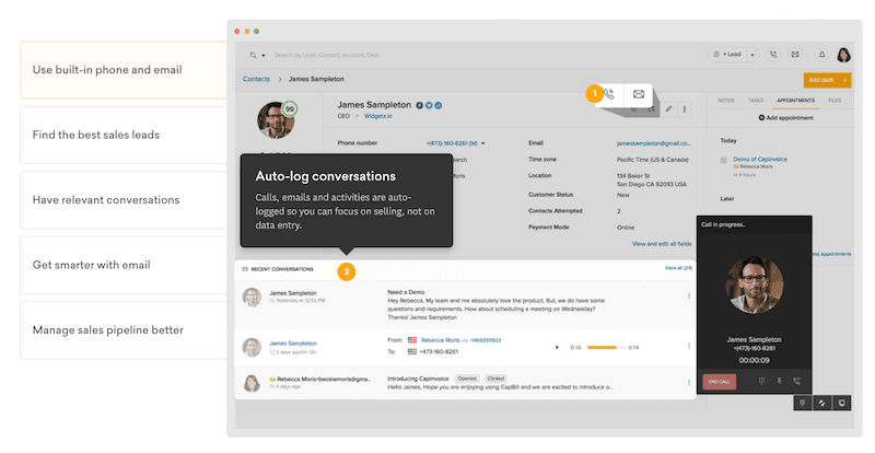 Apart from the essential CRM toolkit, Agile blends in marketing, customer support and automation tools to deliver a complete customer experience package.