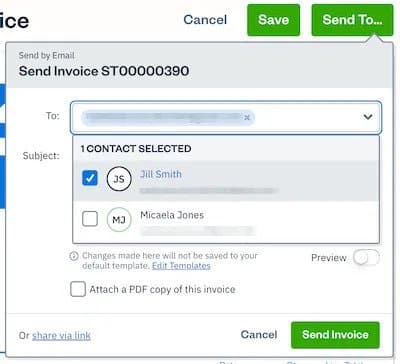 - Select “Send” to see a final overview. The client’s email address and subject line should be filled out automatically by FreshBooks. Confirm the information.