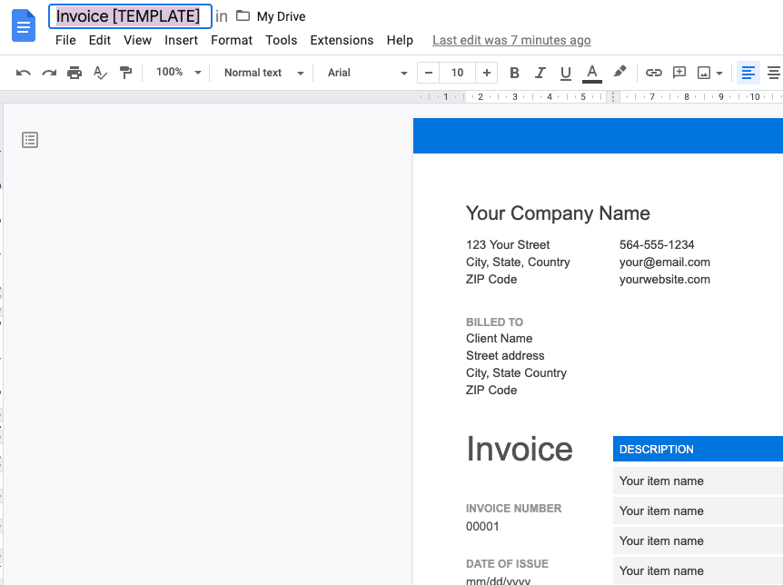 Once you’ve found a standard invoice format, save it to your Google Drive so you can use it as your blank invoicing template.